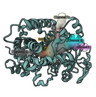 This story turns crystal structures of Cytochrome P450 3A4 into an interactive exploration of ligand binding and substrate access. The story shows how MolViewStories can combine structure superposition, simple animations, and channel visualization.