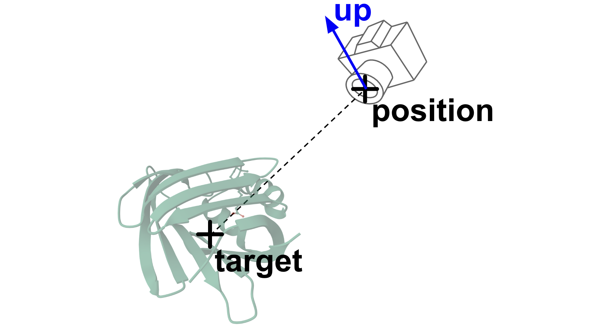 direction(optional): Camera-to-target direction (default:[0, 0, -1])up(optional): Up direction (default:[0, 1, 0])